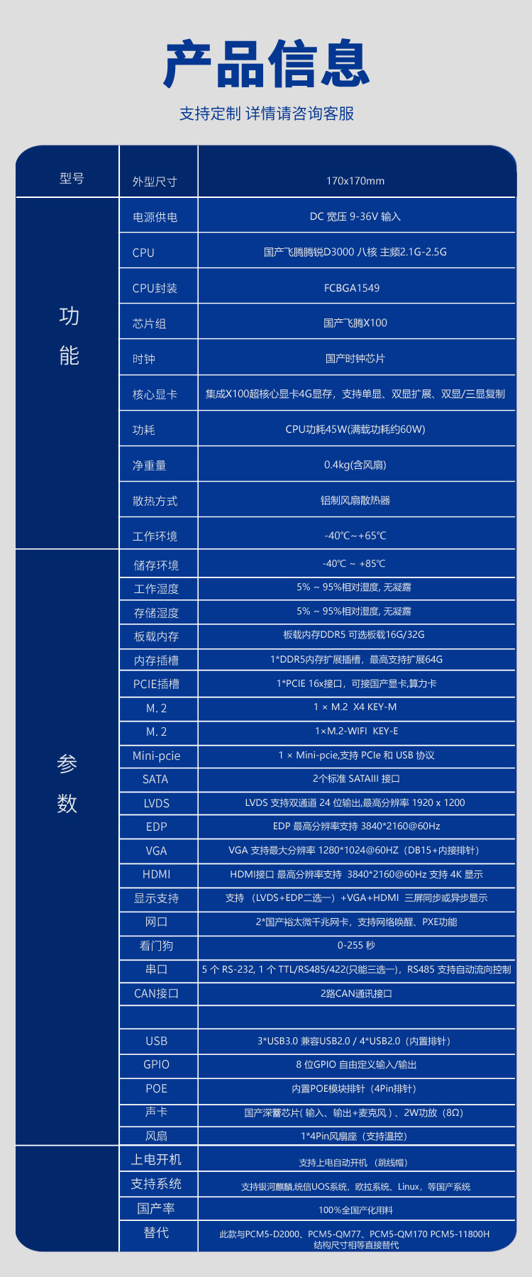 PCM5-D3000 全国产化主板 170x170mm