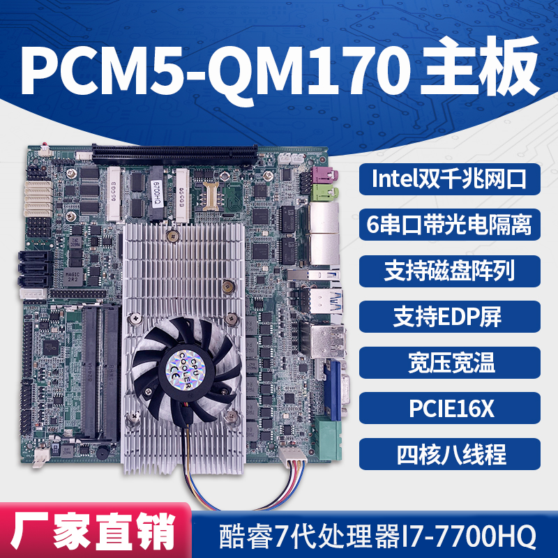 PCM5-QM170 ◆ 集成 Intel 第7代酷睿 /I7-7700HQ 四核八 线程处理器 ◆ 双通道DDR4 2133MHz内存插槽,最大支持单条32G; ◆ 提供 1*VGA,1*HDMI 1.4,1*DP(支持 4K 显示输出); ◆ 1*LVDS(双通道 24 位)和 EDP1.3 (二选一); ◆ 1*PCIE 3.0 16X插槽,自动向下兼容8X 4X 1X; ◆ 支持硬件上电开机功能; ◆ 宽压DC 9-30V 输入; ◆ 结构 MINI-ITX 架构 170 x 170 mm;